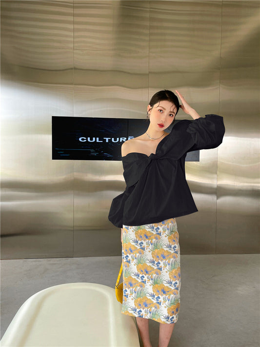 [PRE ORDER]slit design ⅼong skirt&off shoulder tops AL#1077